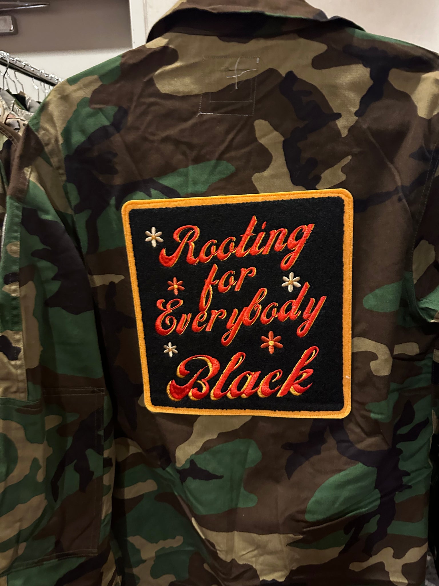 Say it with your chest with our 'Rooting For Everybody Black' embroidered sew on patch! You’ve got options whether