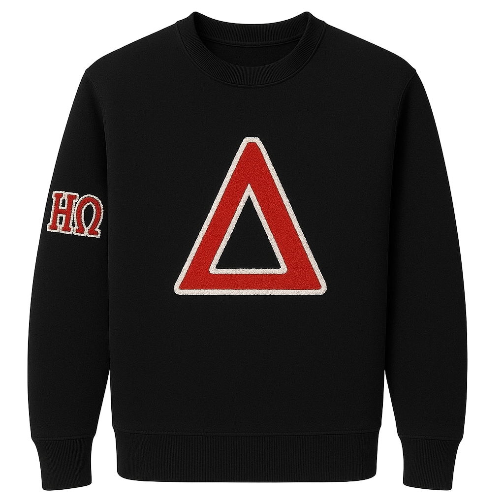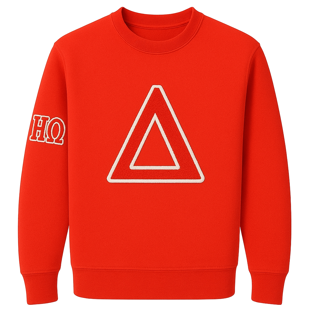 This bold sweatshirt celebrates Delta Sigma Theta sisterhood with a sleek red Δ across the chest and ΗΩ on the right sleeve, a nod to the legacy and excellence of your undergrad chapter. Designed for comfort and confidence and features three premium chenille patches. it’s the perfect homecoming fit whether you’re on the yard, at the tailgate, or reuniting with your line sisters.